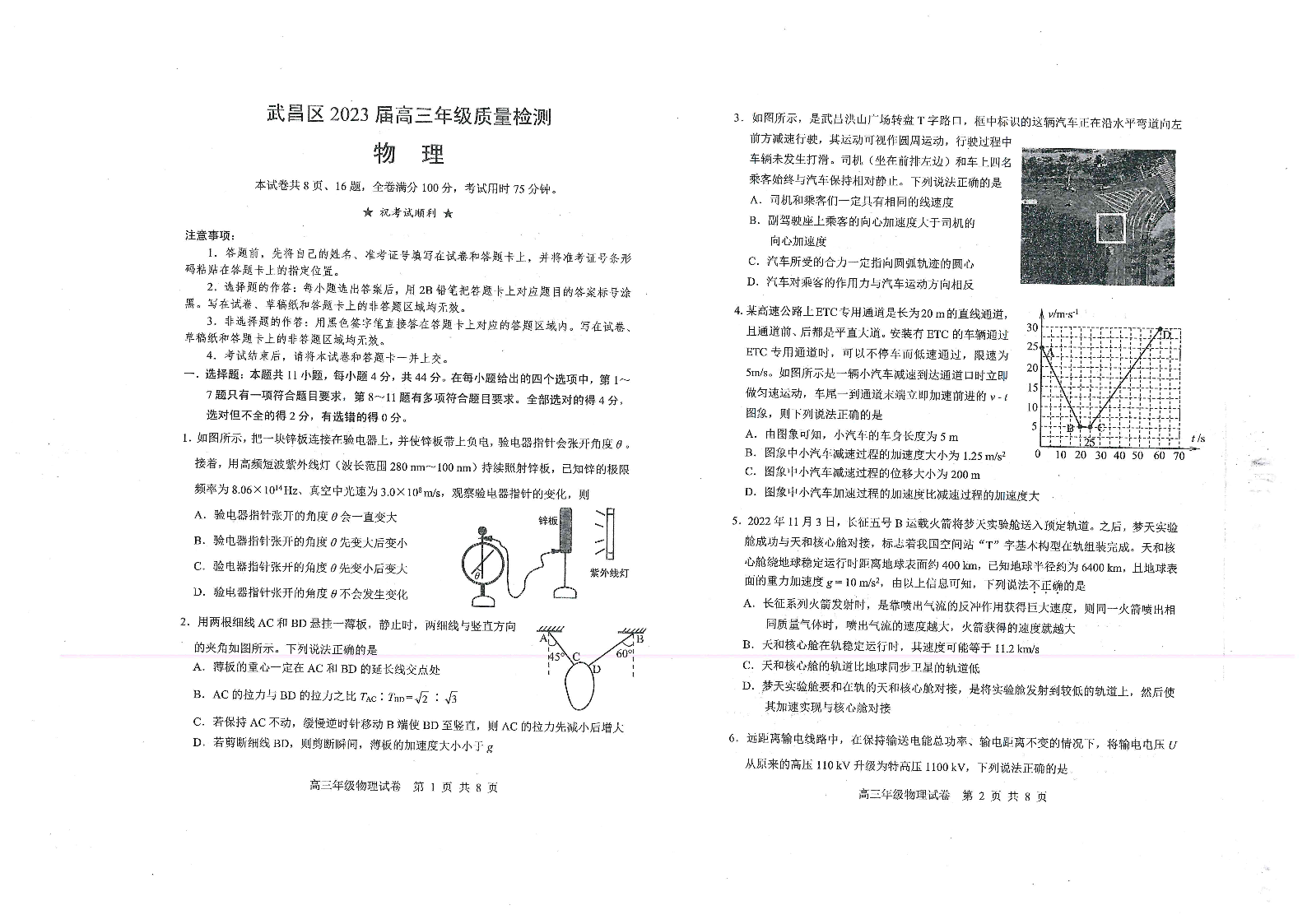 高三物理--湖北省武汉市武昌区2023届高三元月调考卷