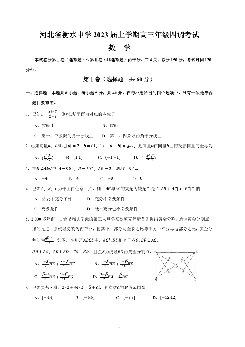 高三数学+答案--河北省衡水中学2022-2023学年高三上学期四调考试