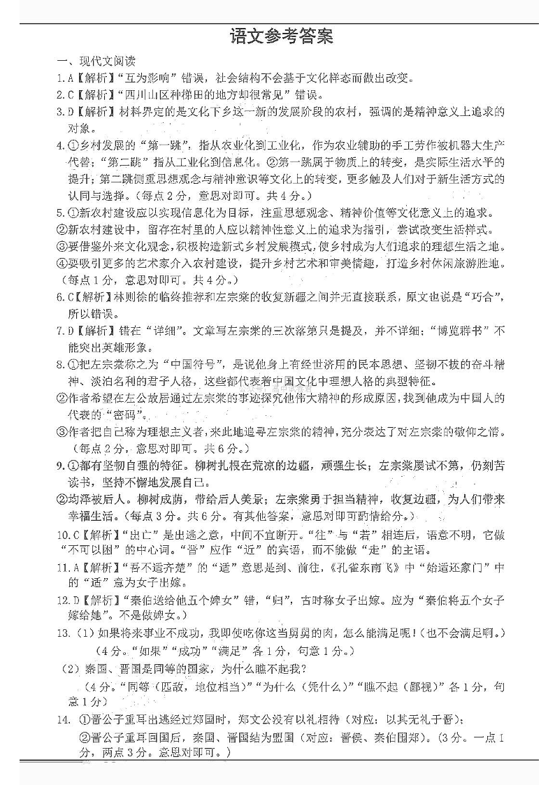 高三语文答案--河北省石家庄市2022-2023学年高三上学期期末考试试题