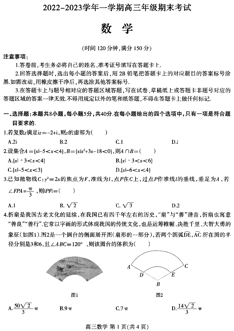 高三数学--河北省石家庄市2022-2023学年高三上学期期末考试试题