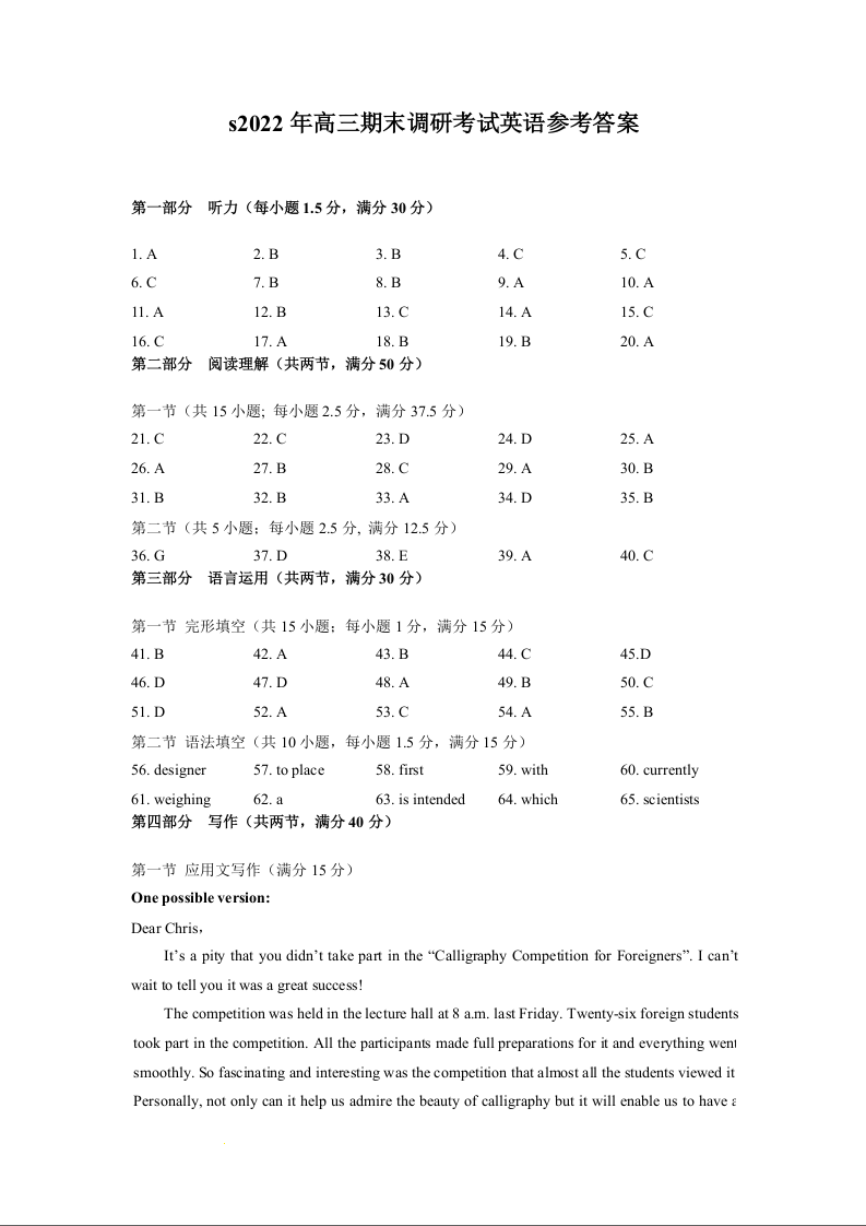 高三英语答案--河北省保定市2023届高三上学期1月期末调研考试
