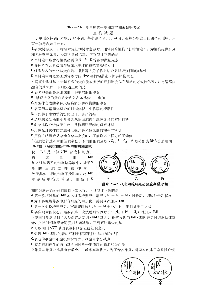 高三生物+答案--河北省保定市2023高三上学期1月期末调研考试