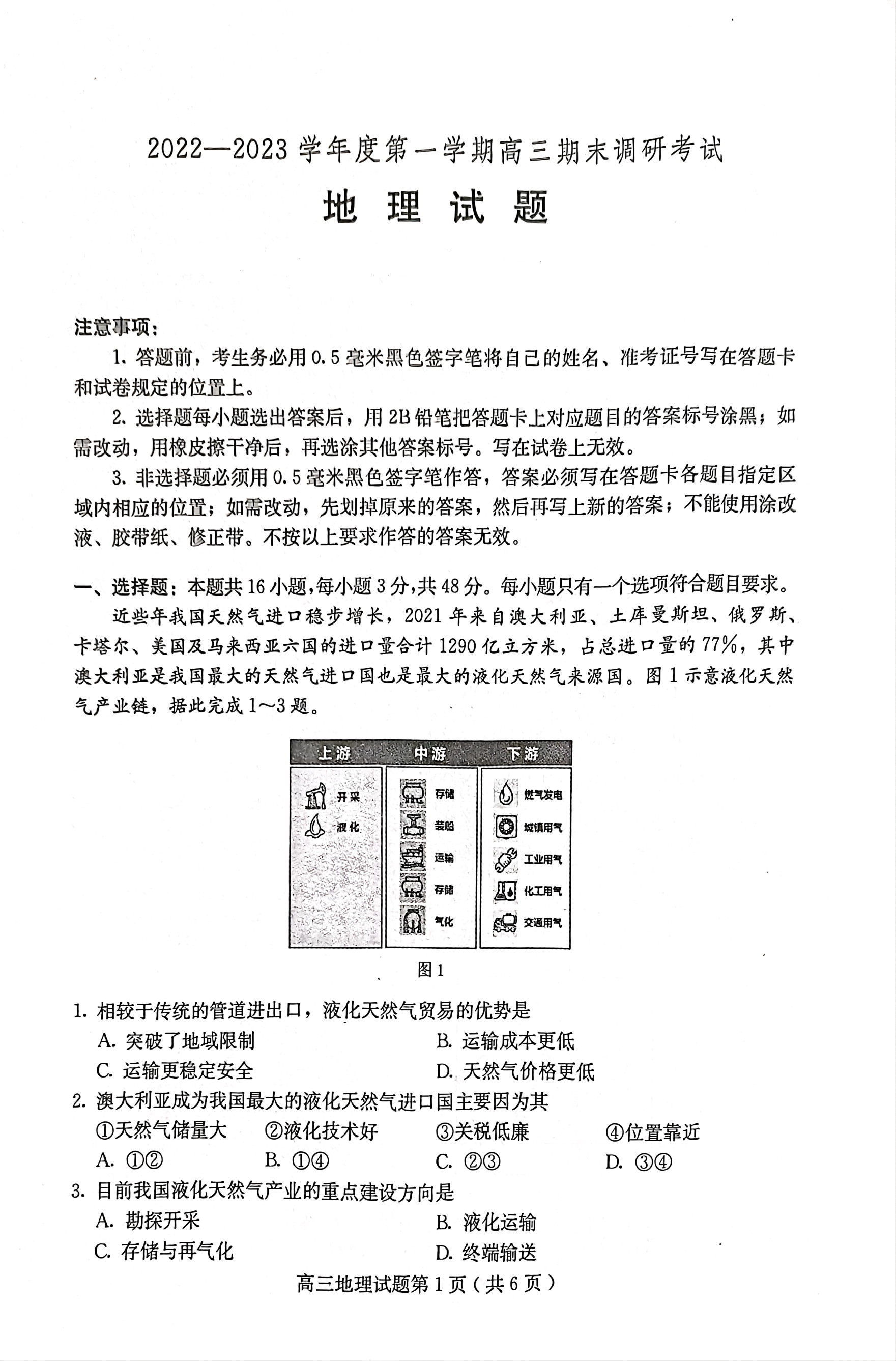 高三地理--河北省保定市2023高三上学期1月期末调研考试