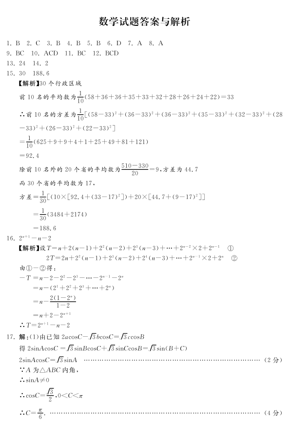 高三数学答案--河北省2023高三下学期质量监测(开学考)