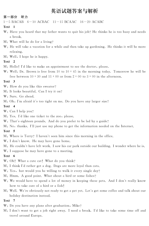 高三英语答案--河北省2023高三下学期质量监测(开学考)