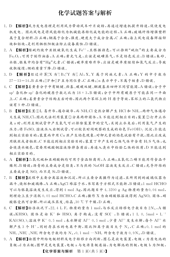 高三化学答案--河北省2023高三下学期质量监测(开学考)