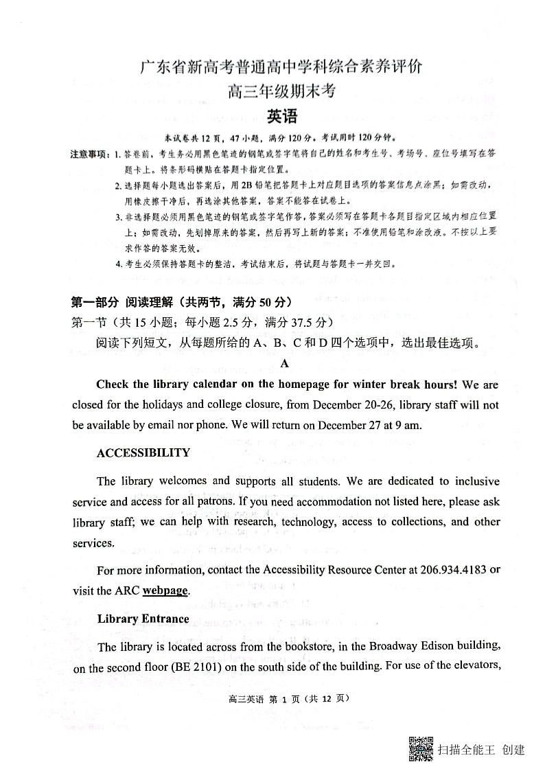高三英语--广东省新高考2023普通高中学科综合素养评价