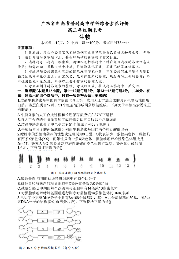 高三生物--广东省新高考2023普通高中学科综合素养评价