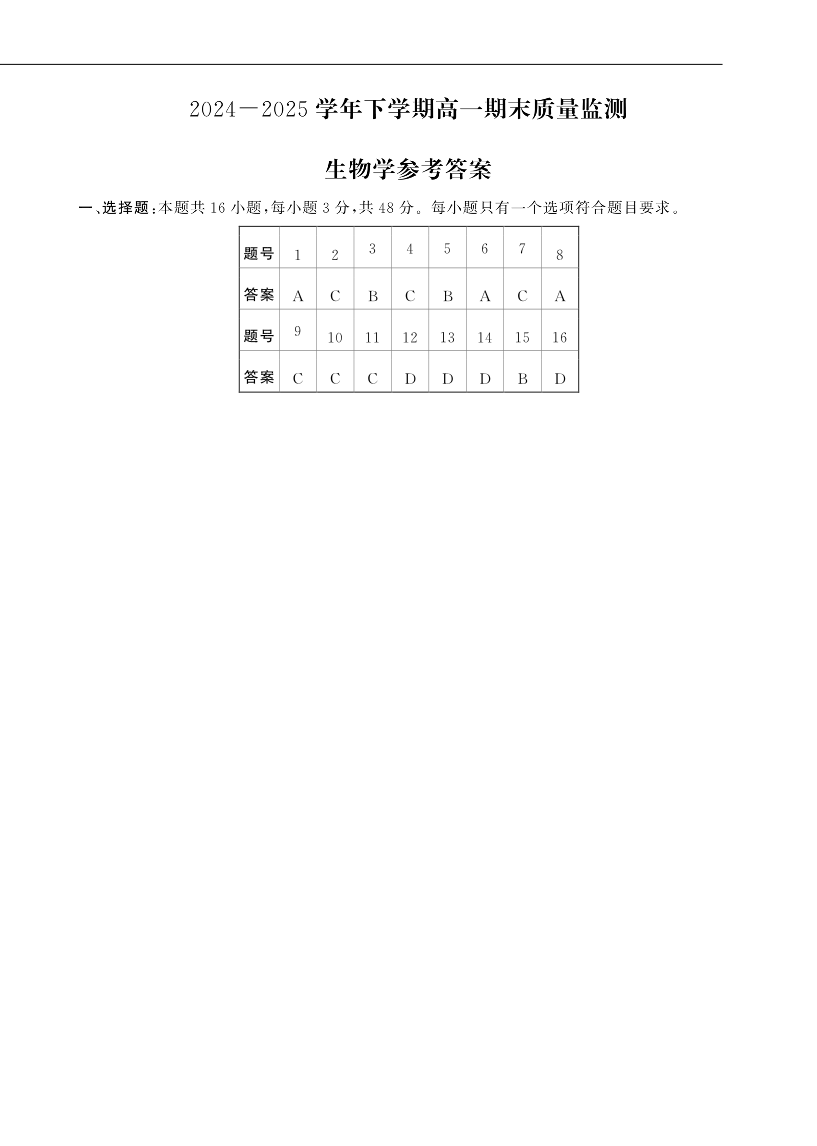 高一生物答案--河南省信阳市普通高中2024-2025学年高一下学期期末考试