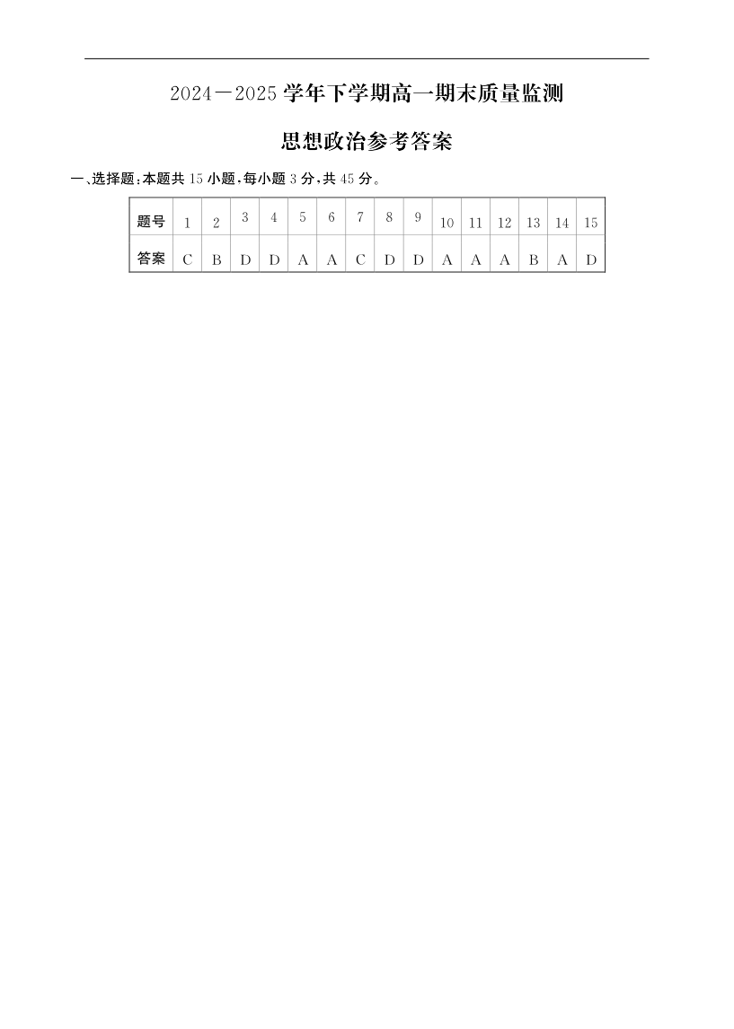 高一政治答案--河南省信阳市普通高中2024-2025学年高一下学期期末考试