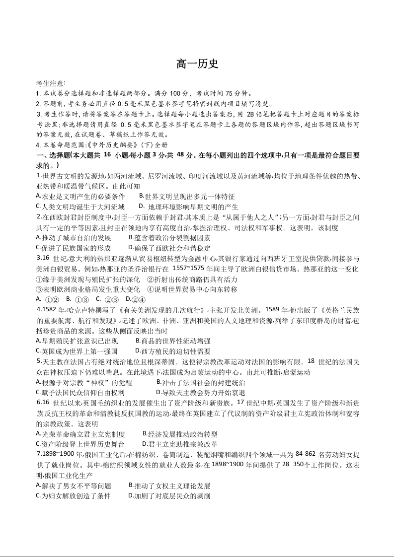 高一历史+答案--辽宁省普通高中2024-2025学年高一下学期7月期末联考试题