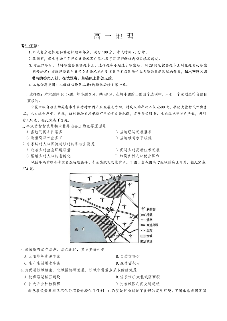 高一地理+答案--辽宁省普通高中2024-2025学年高一下学期7月期末联考试题