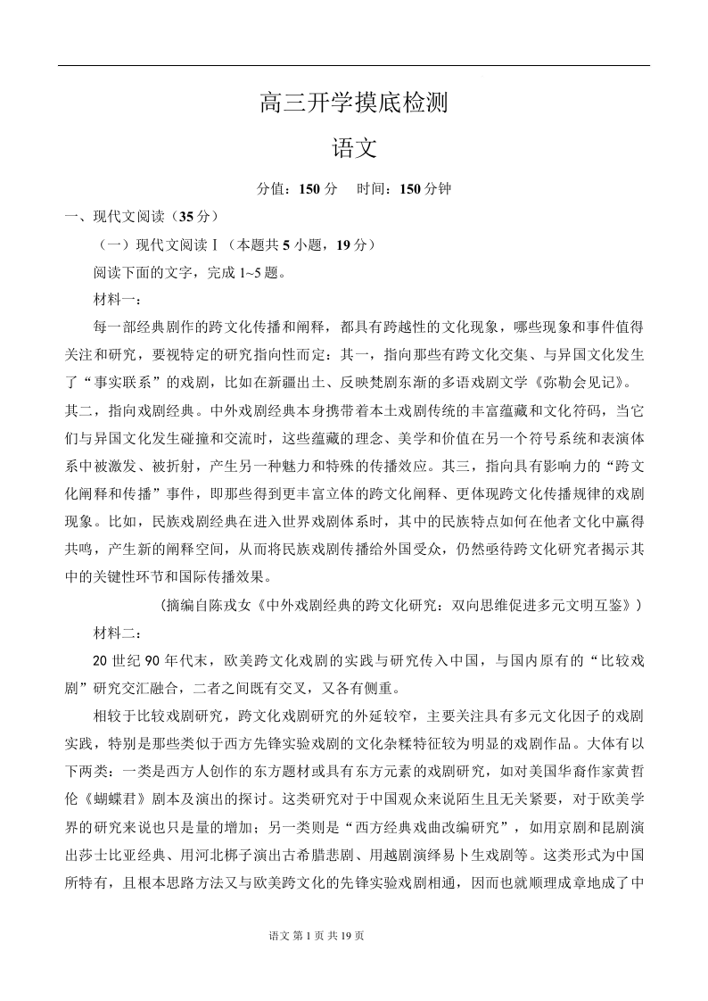 高三语文+答案--安徽省阜阳市临泉第二中学2026届高三上学期8月开学考试