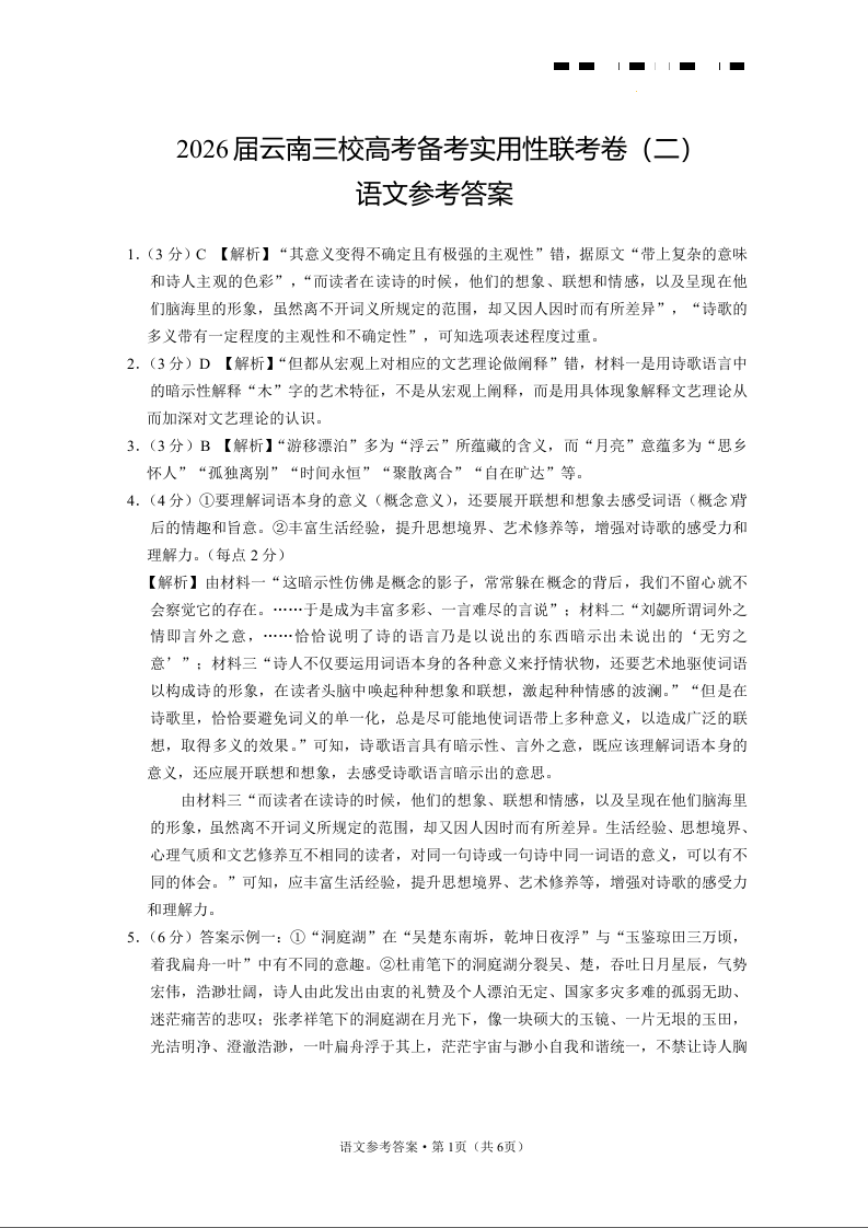 高三语文答案--云南三校2026届高考备考实用性8月联考卷(二)