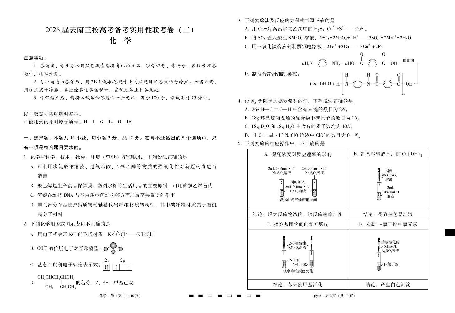 高三化学--云南三校2026届高考备考实用性8月联考卷(二)