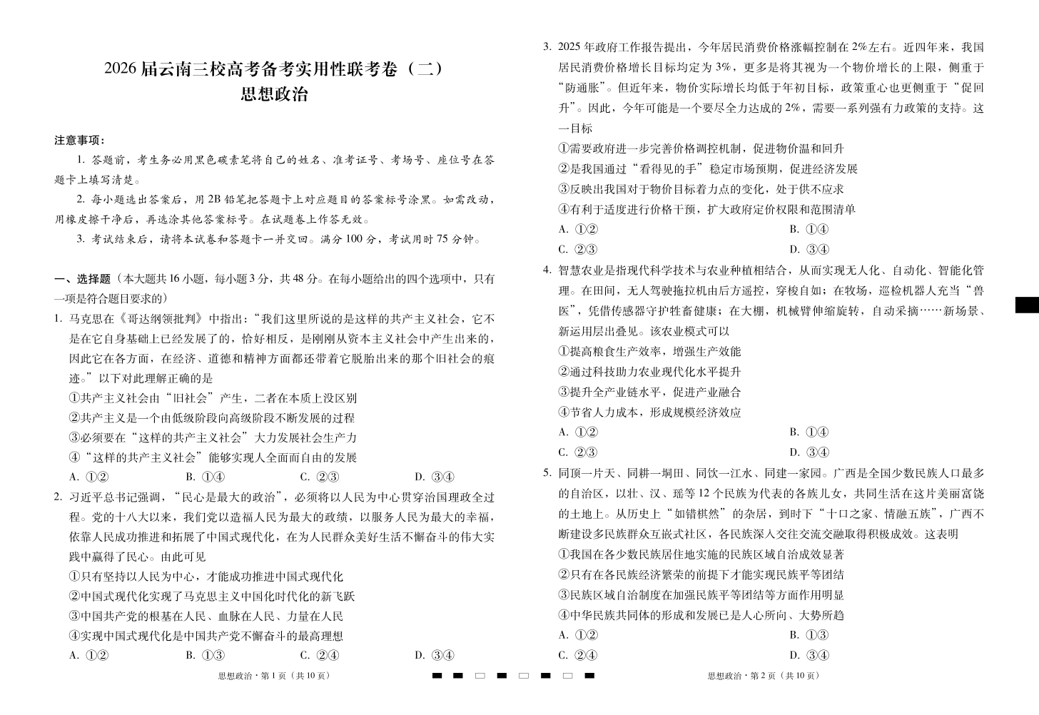 高三政治--云南三校2026届高考备考实用性8月联考卷(二)