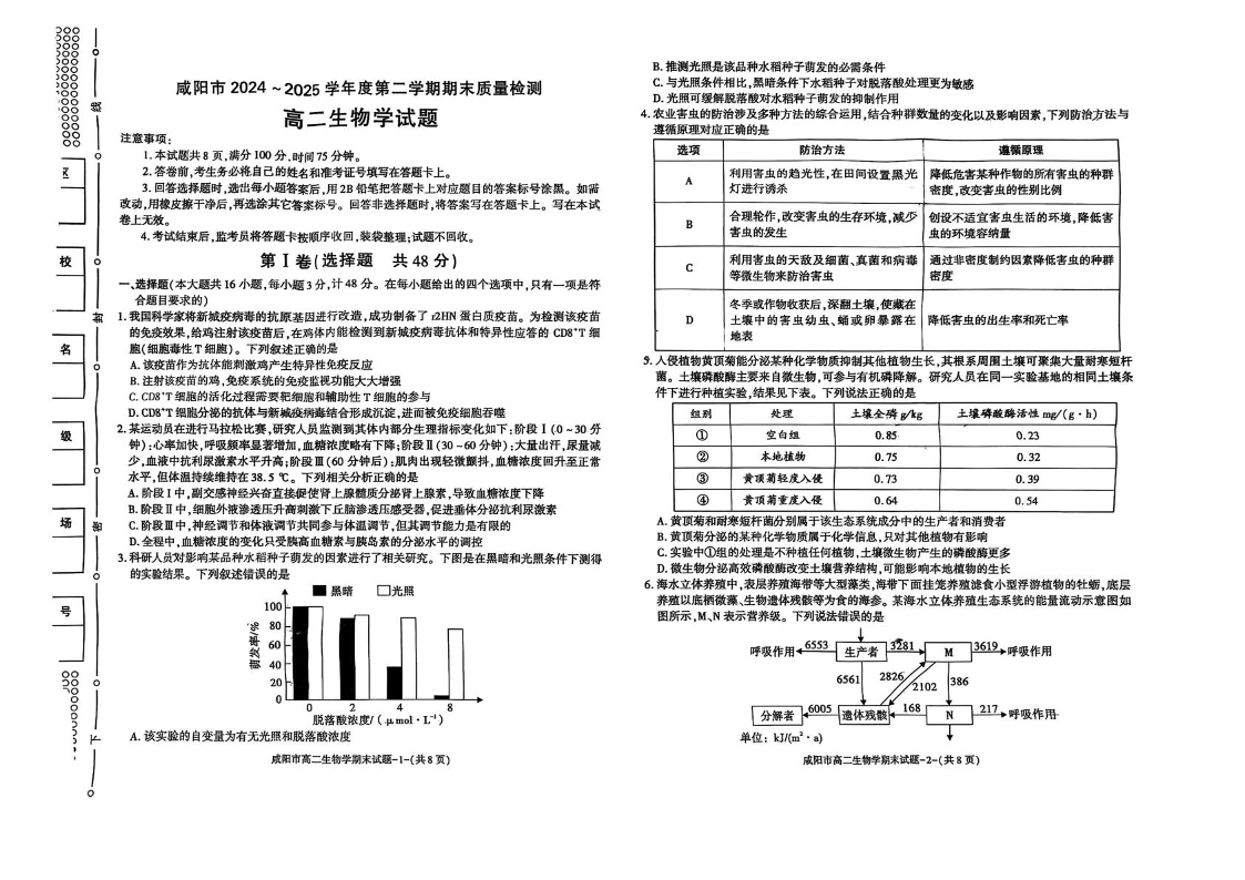 高二生物+答案--陕西省咸阳市2024-2025学年高二下学期期末考试