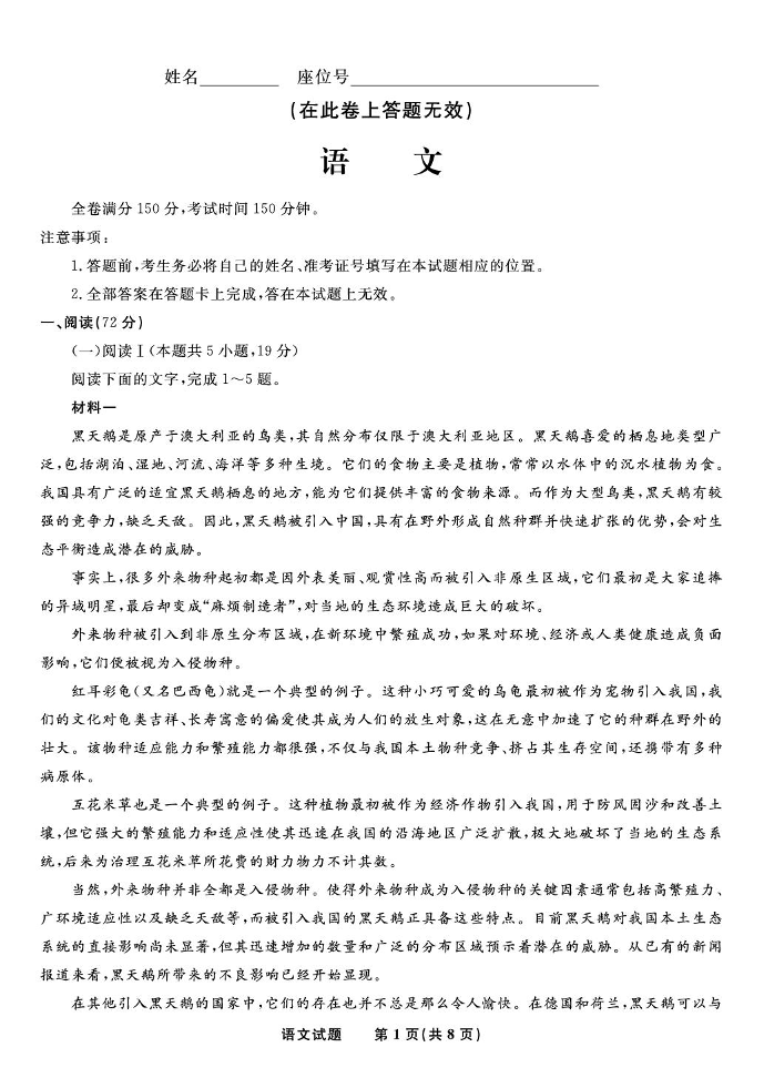 高三语文--安徽省安庆一中2026届高三上学期8月开学考试