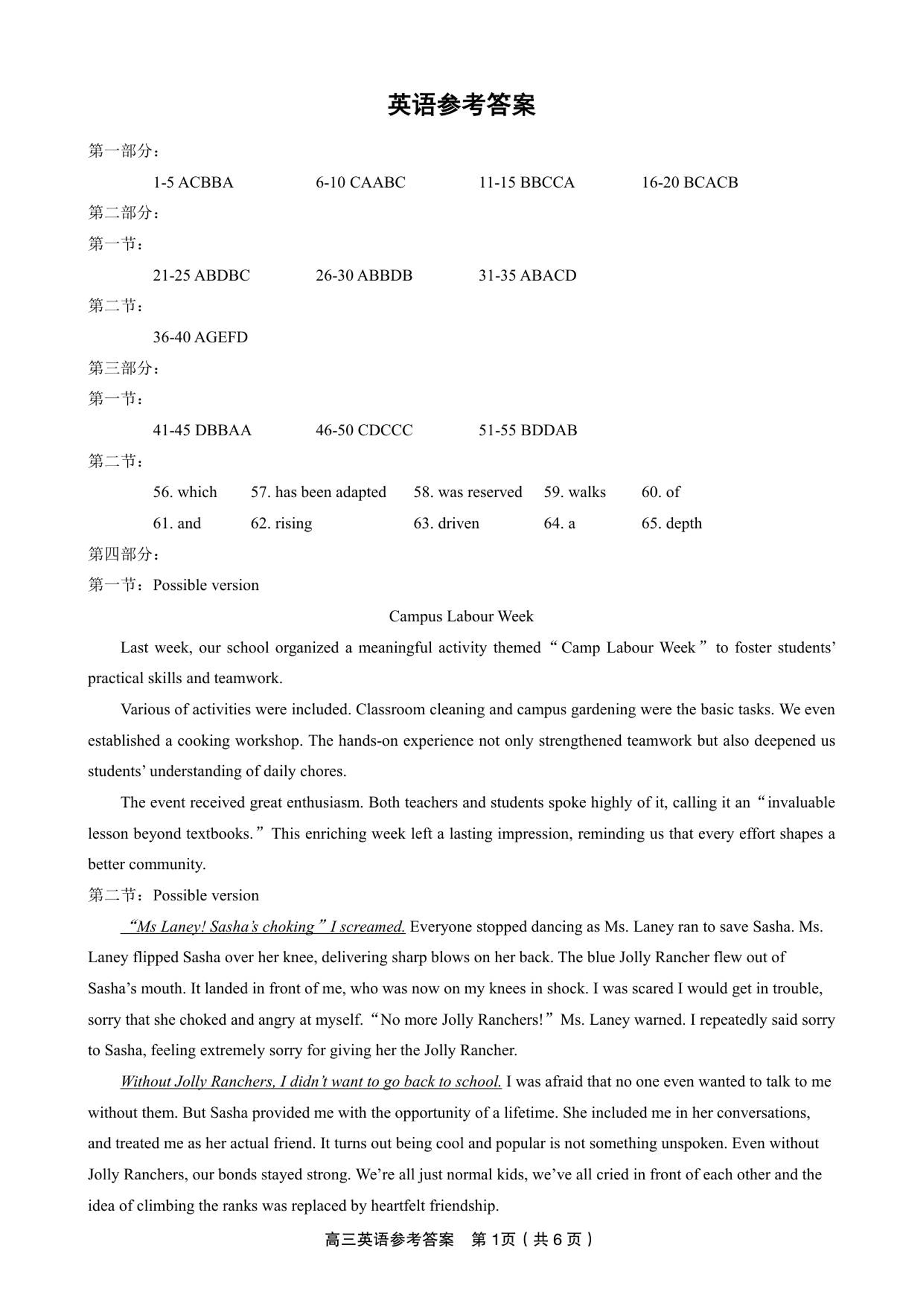 高三英语答案--安徽省安庆一中2026届高三上学期8月开学考试