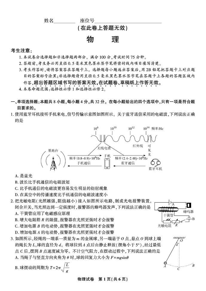 高三物理--安徽省安庆一中2026届高三上学期8月开学考试