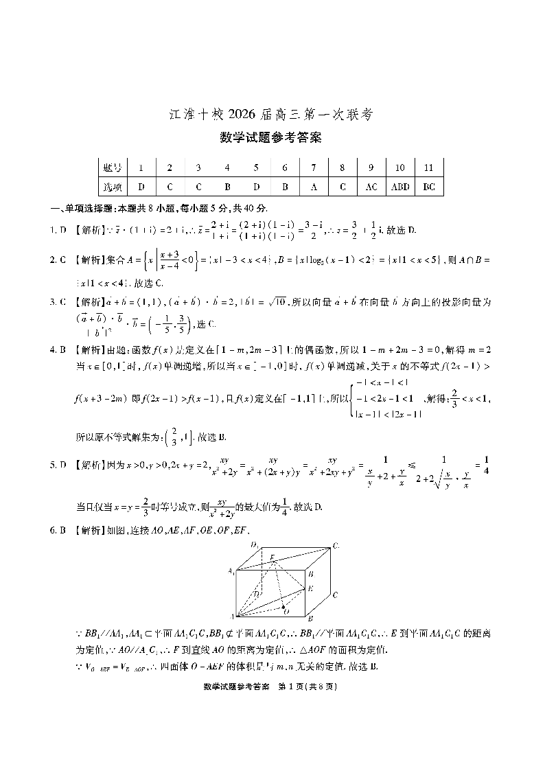 高三数学答案--安徽省江淮十校2026届高三上学期第一次联考