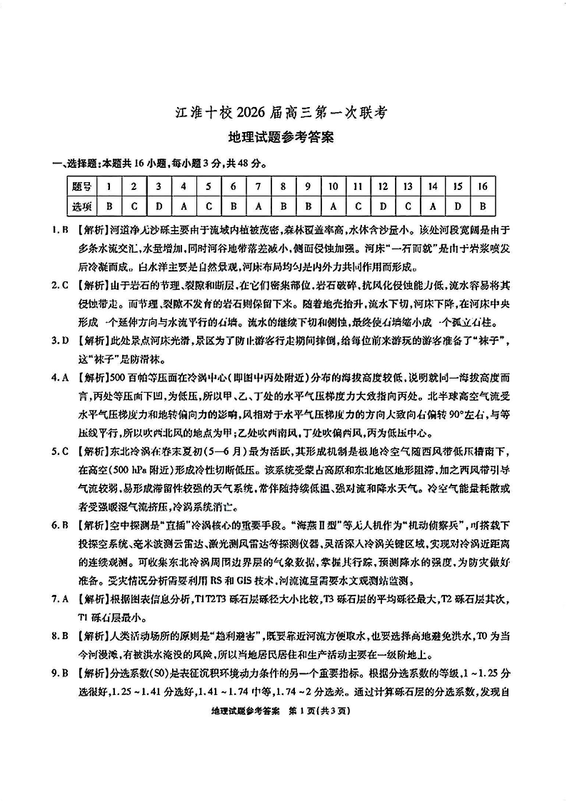 高三地理答案--安徽省江淮十校2026届高三上学期第一次联考