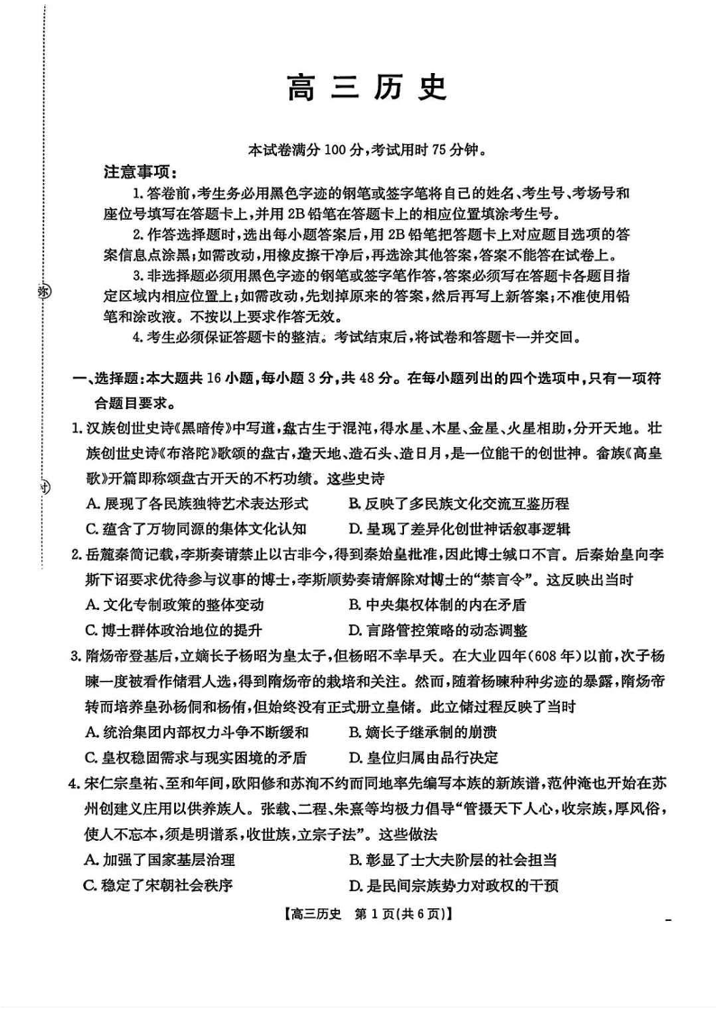 高三历史+答案--广东省2026届高三8月开学联考(05C)