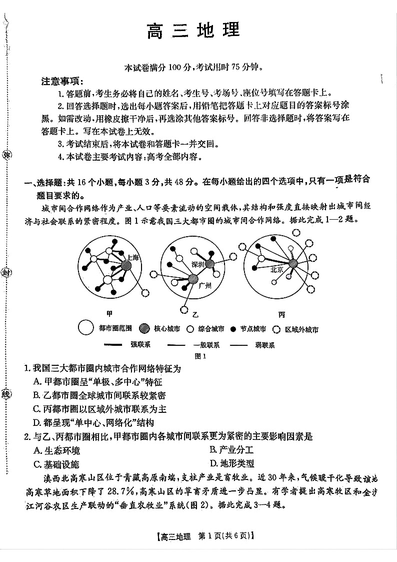 高三地理--广东省2026届高三8月开学联考(05C)