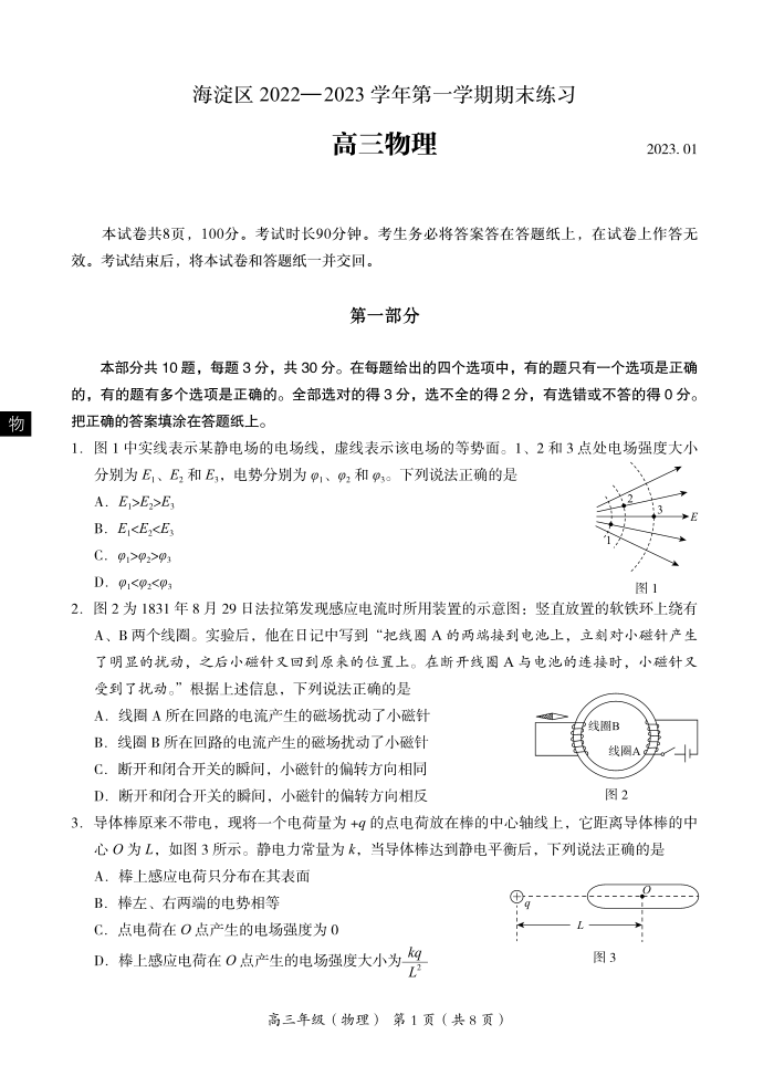 高三物理--北京市海淀区2022-2023学年高三上学期期末考试