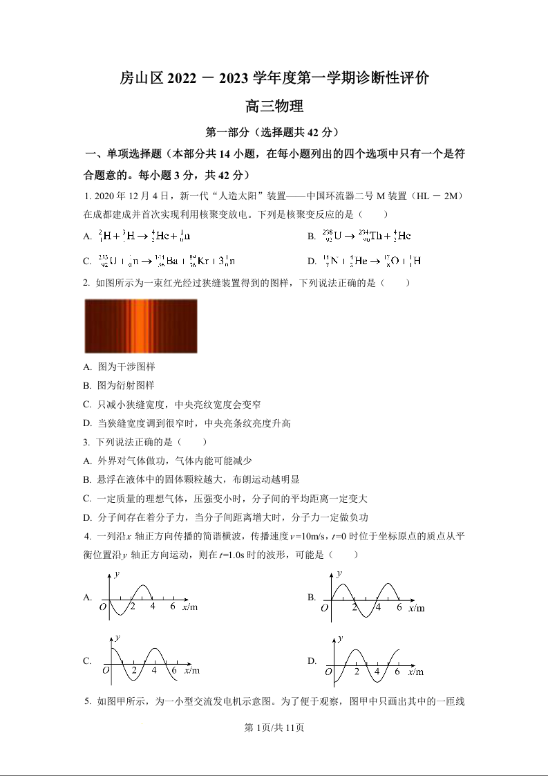 高三物理+答案--北京市房山区2023届高三上学期1月期末