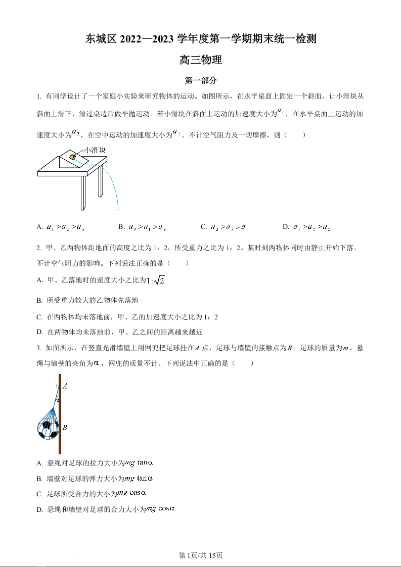 高三物理--北京市东城区高三上学期期末统一检测