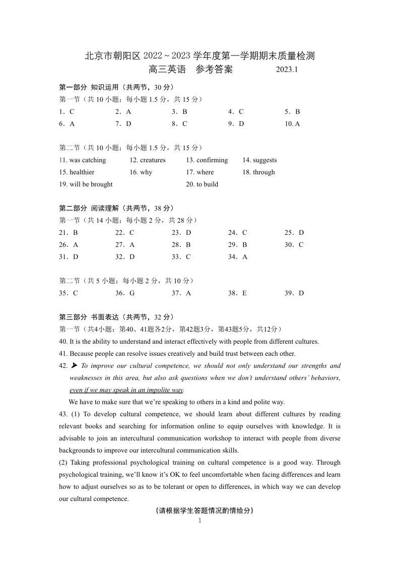 高三英语答案--北京朝阳区2023年高三上学期期末
