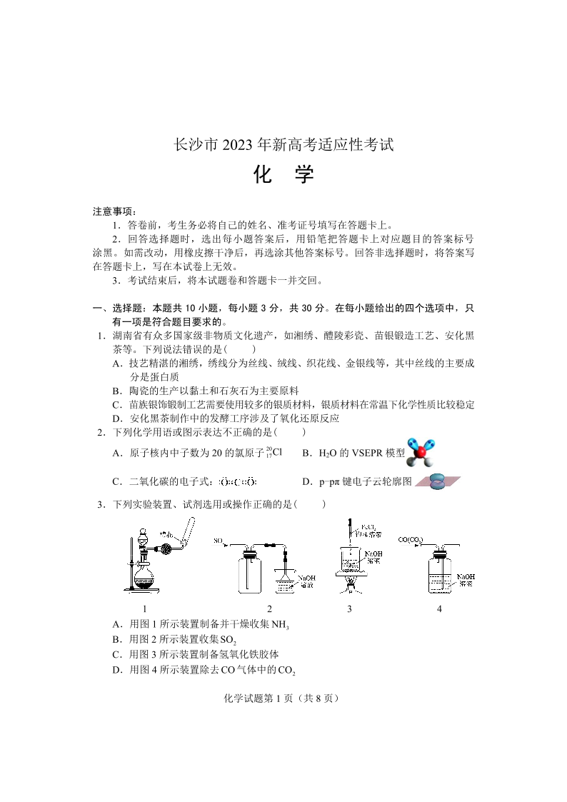 高三化学--湖南省长沙市2023年新高考适应性考试