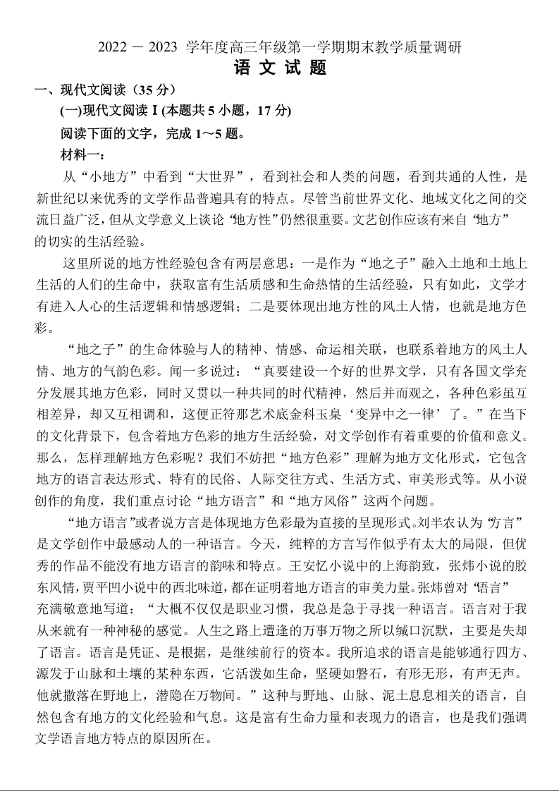 高三语文--湖南省长沙市2023年新高考适应性考试