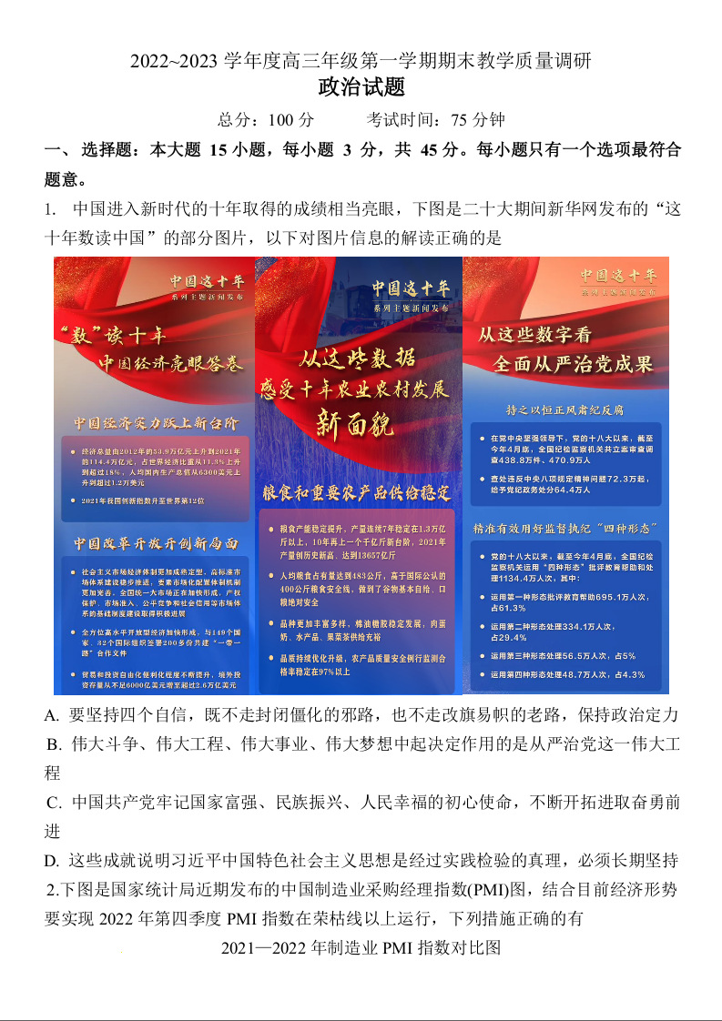 高三政治--湖南省长沙市2023年新高考适应性考试