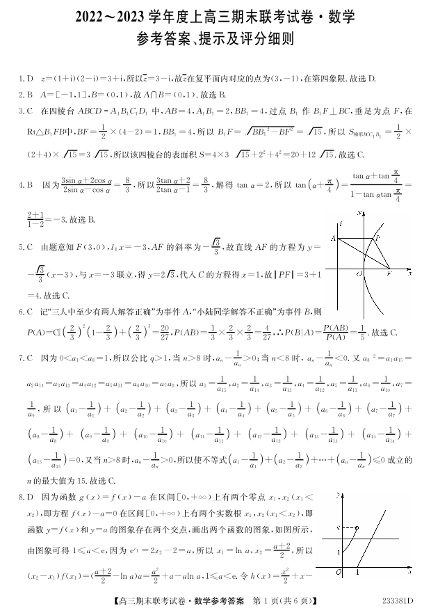 高三数学答案--辽宁省2022-2023学年高三上学期期末联考