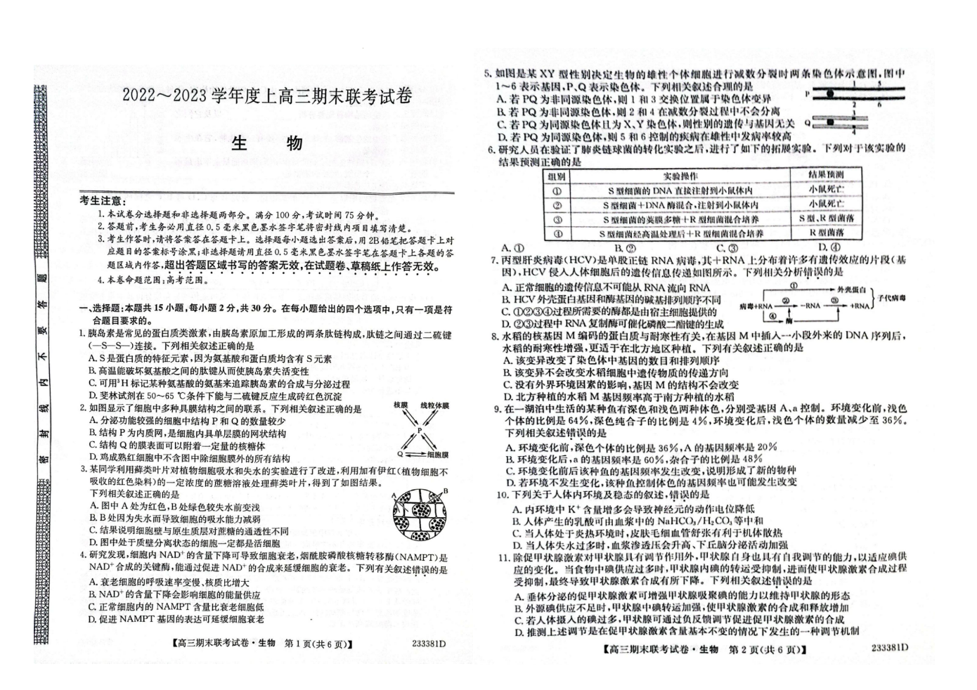 高三生物--辽宁省2022-2023学年高三上学期期末联考