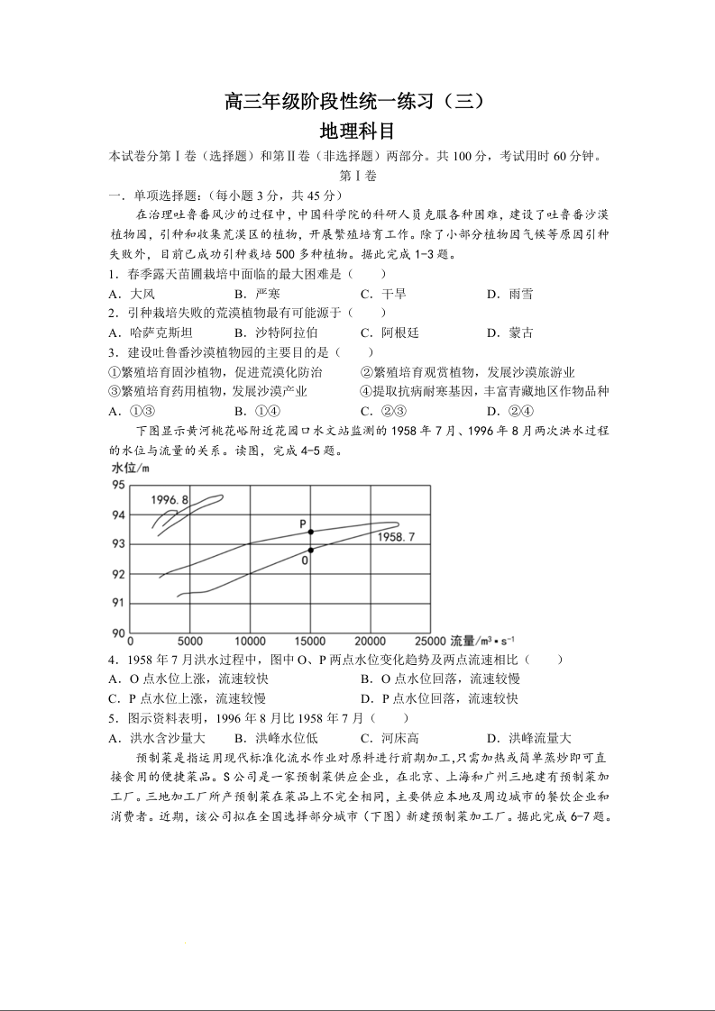 高三地理+答案--天津市南开中学高三上学期1月期末