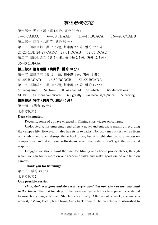 高三英语答案--黑龙江省新时代高中教育联合体2026届高三上学期8月开学测试