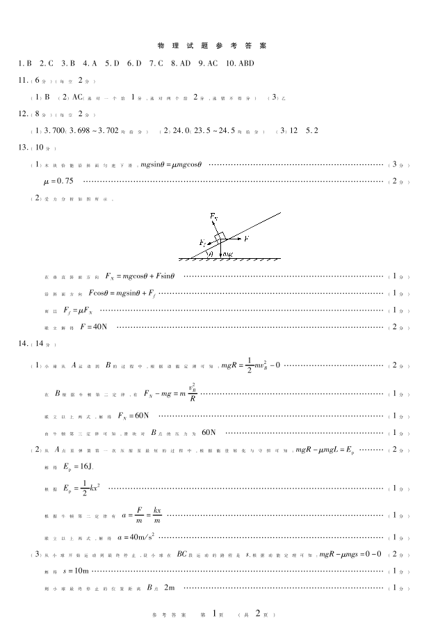 高三物理答案--黑龙江省新时代高中教育联合体2026届高三上学期8月开学测试