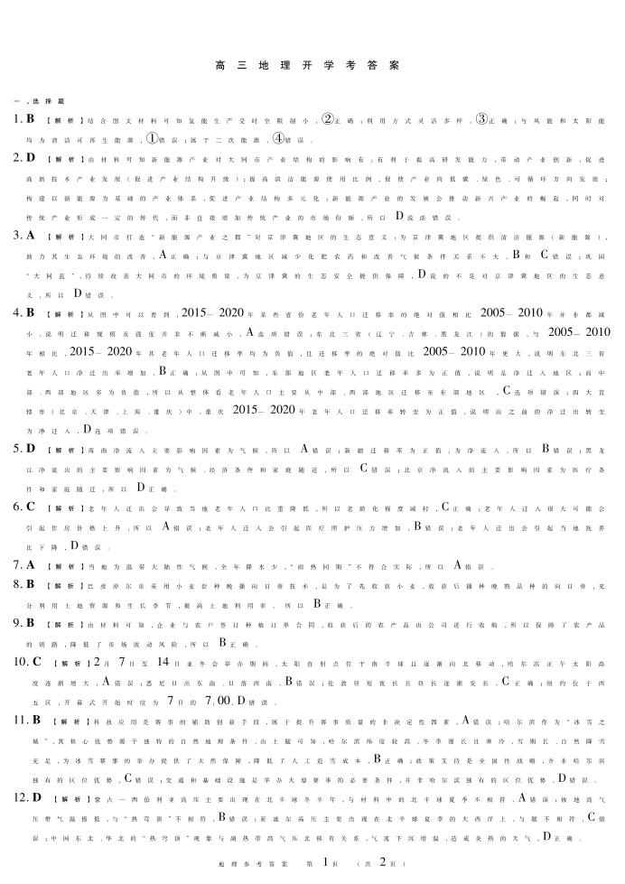 高三地理答案--黑龙江省新时代高中教育联合体2026届高三上学期8月开学测试