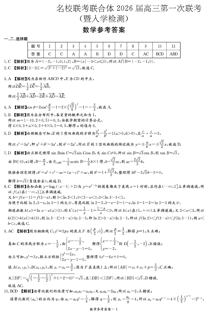 高三数学答案--湖南省炎德·英才·名校联考联合体2026届高三第一次联考