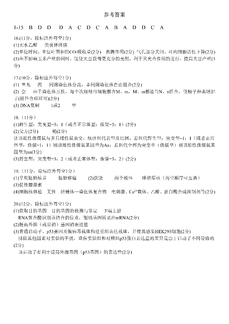高三生物答案--四川省成都市第七中学2026届高三上学期8月入学考试