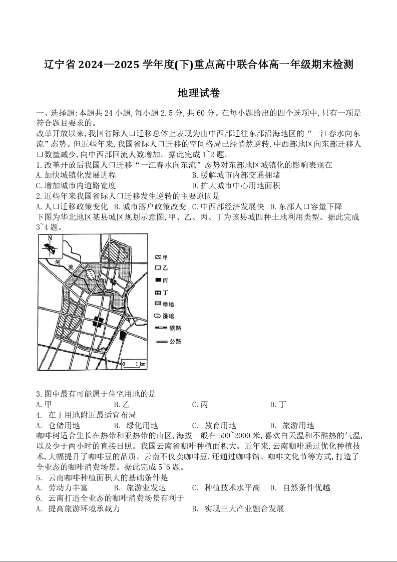 高三地理+答案--辽宁省重点高中联合体2024-2025学年高一下学期7月期末考试