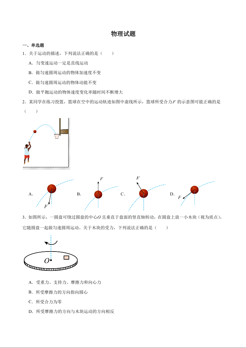 高三物理+答案--陕西省榆林市2024-2025学年高一下学期期末考试