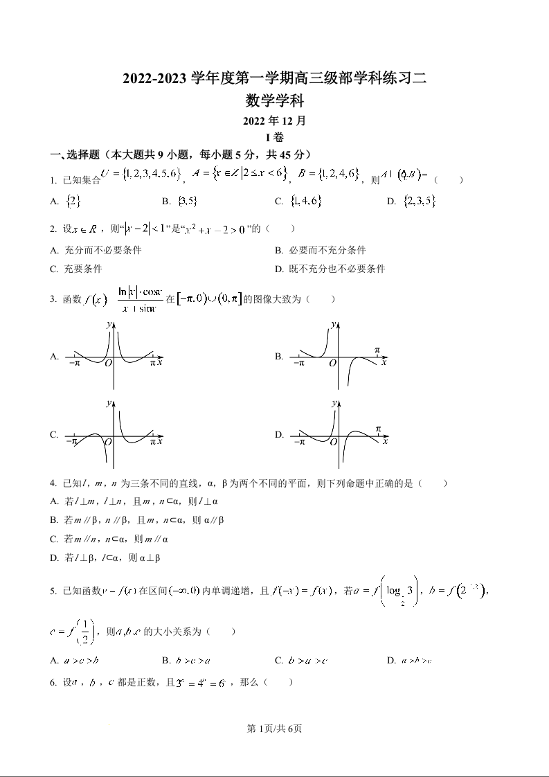 高三数学+答案--天津市新华中学2022-2023学年高三上学期第二次月考