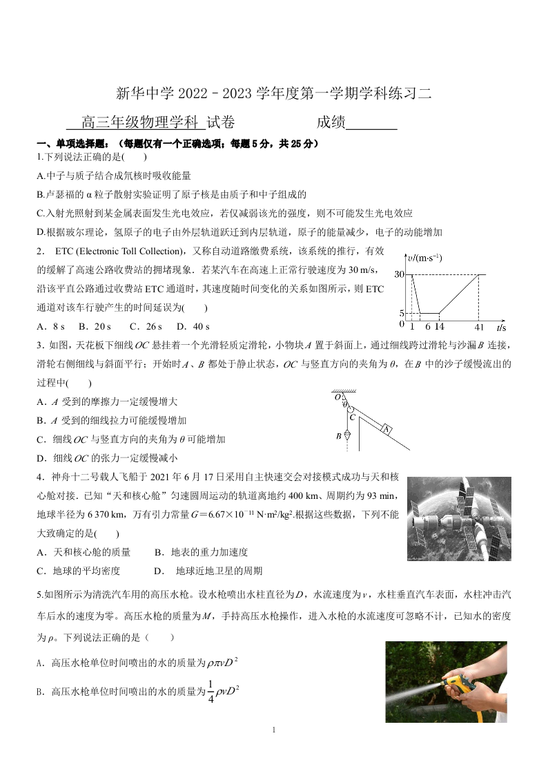 高三物理--天津市新华中学2022-2023学年高三上学期第二次月考