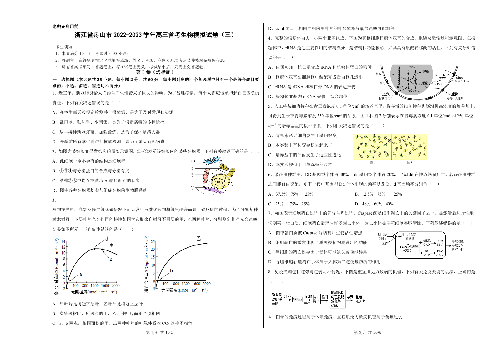 高三生物+答案--浙江省舟山市2022-2023学年高三首考模拟(三)