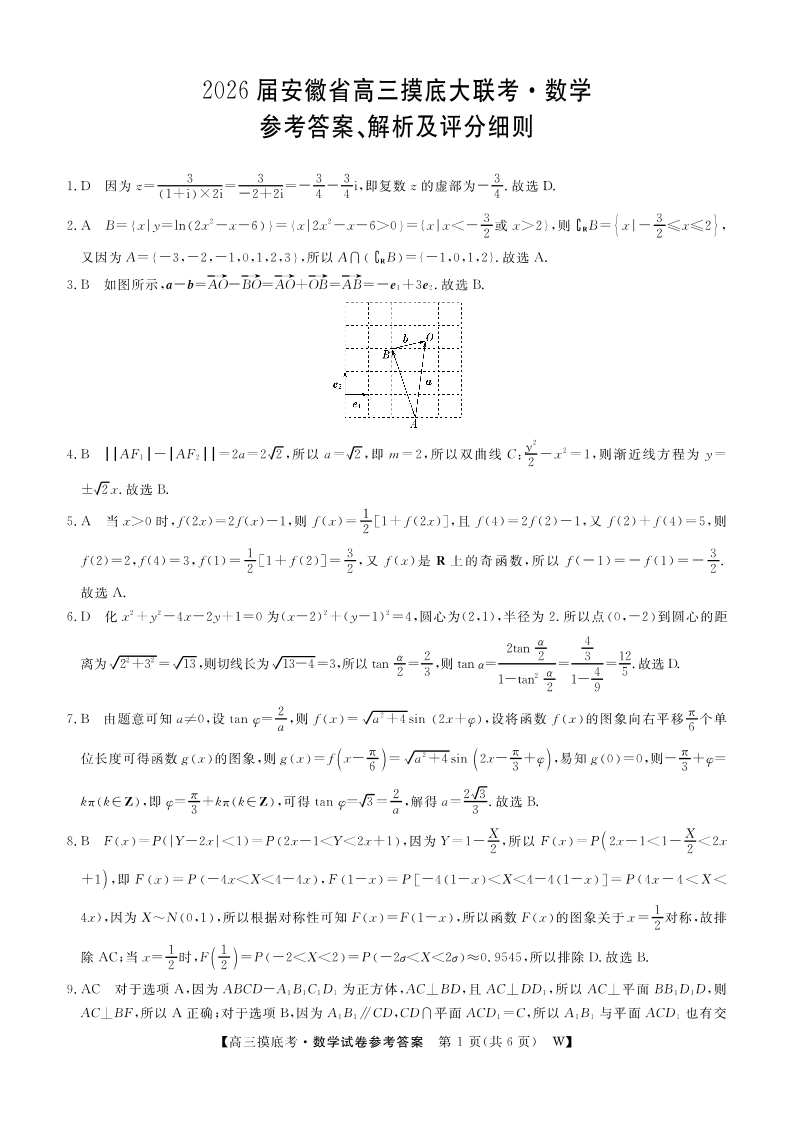 高三数学答案--安徽省皖南八校2026届高三上学期8月摸底大联考