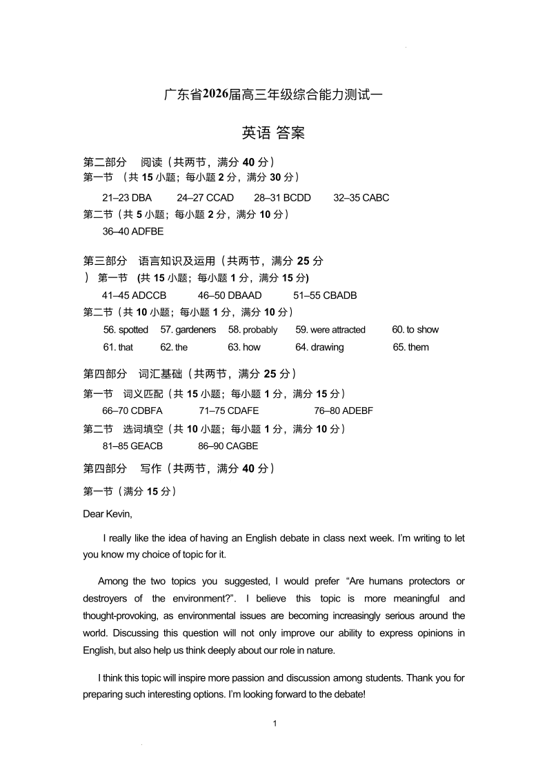 高三英语答案--广东省光大联考2026届高三上学期综合能力测试(一)
